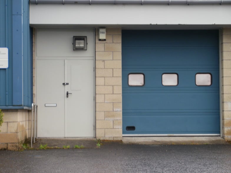 Industrial unit located at The Glebe Industrial Estate in Douglas. It is a parade of units of masonry construction each with a drive in garage door.