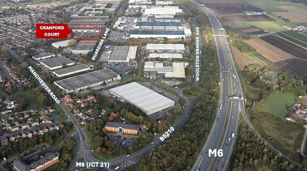 The property comprises a terrace of industrial units of steel portal frame construction with part brick and part profile steel clad elevations. The property is located towards the southern end of Hardwick Grange in Warrington. The estate is adjacent to Junction 21 of the M6 and benefits from excellent access to the M62 and M56 Motorways.