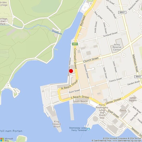 The subjects are located in the centre of town adjacent to Stornoway Harbour on the west side of Cromwell Street (A857) with a pleasant outlook and views across the Harbour and beyond. The property benefits from car parking directly adjacent to the building.