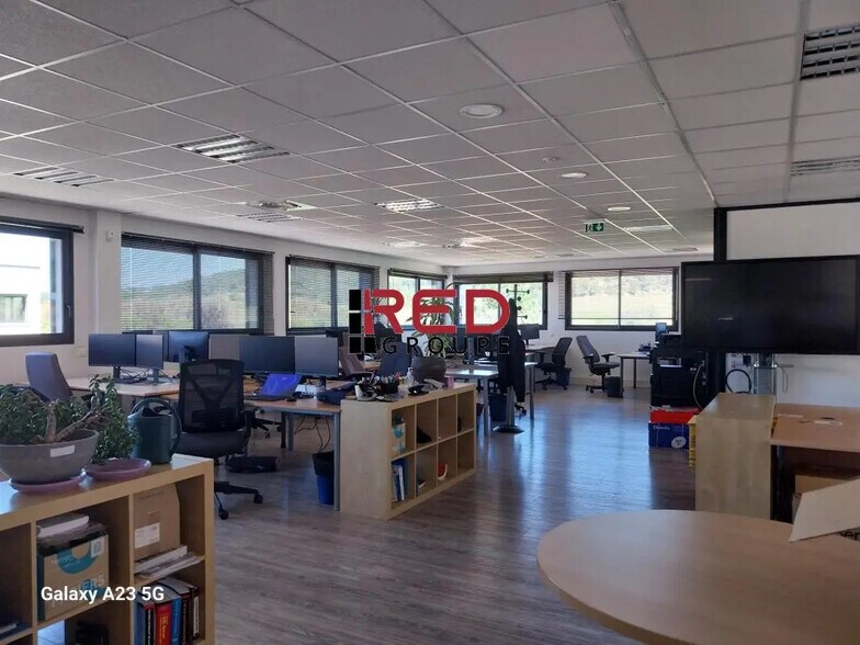 Bureaux cloisonnés (cloisons montées sur allège) ; à l'étage open space et bureaux cloisonnés.