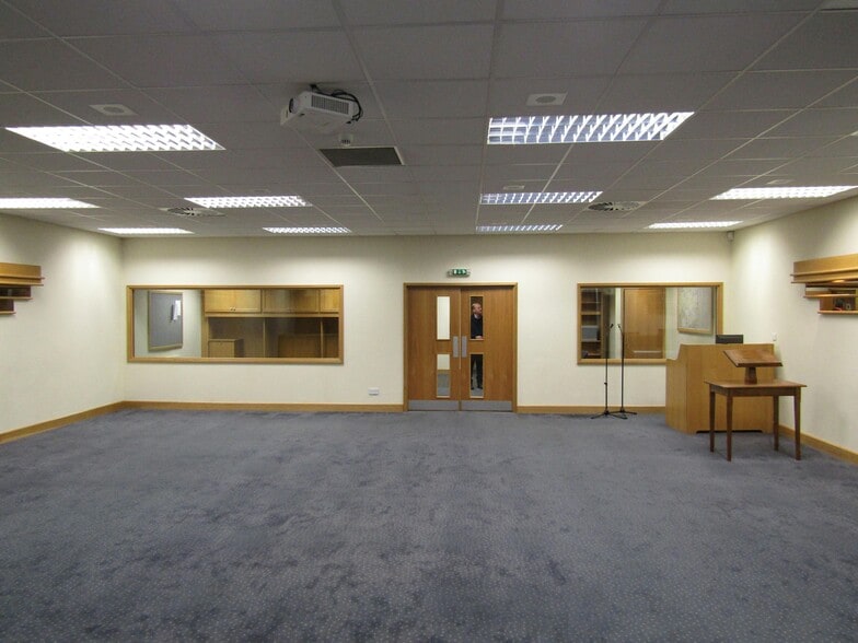 Detached hall with a large gated car park Gloucester Hall was constructed in circa 2004 as a meeting hall and was then used as a children's nursery. The main hall provides a large roughly square space suitable for a wide range of uses subject to any necessary consents. The building also benefits from a well fitted kitchen, comfortable breakout room overlooking the hall, male, female and disabled WCs. Outside there is a large car park with 22 spaces (6 of which are shared with a neighbouring building). There is a further outdoor area previously used for outside play.