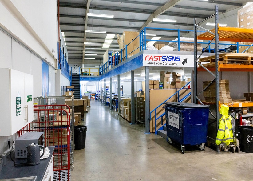 Prime business park location 2 loading doors 7.2m eaves height Fully fitted ancillary offices 11 parking spaces Plus 6,000 sq ft mezzanine store The 500-acre Hatfield Business Park is the premier business location in the A1(M) corridor in Hertfordshire. It occupies a superb location between junctions 3 and 4 of the A1(M) between Hatfield and St Albans. Major headquarters occupiers on the park include Ocado, Computercentre, Affinity Water, Booker, Porsche, McLaren Cars, Ferrari, McLaren, Aston Martin, Jaguar Rover, Yodel, Esai and the University of Hertfordshire. The IO Centre is a highly successful development of production and warehouse units completed in 2006. It is the only opportunity for small/medium size users to acquire business premises within the Business Park. An end-of-terrace property that forms part of a block of four units on the extremely popular IO Centre estate, comprising an exceptionally well-fitted and attractively presented warehouse/production building. It is constructed of a steel portal frame, with elevations and roof finished in low-maintenance silver/blue PVC-coated steel cladding. Security is enhanced by precast concrete inner perimeter walls to a height of approx. 2.25m. The building has an approximate eaves height of 7.2m. The front elevation incorporates two full-size electrically operated loading doors, each measuring approx. 4m wide by 5.1m high, together with double-glazed windows at both ground and first-floor levels. To the front of the property is a dedicated loading and parking area finished with brick paviours, with additional estate parking located opposite. There are 11 car parking spaces included with the demise with in addition the ability to double park in front of the loading doors. The warehouse / production area benefits from high-bay lighting and is decorated in white. A substantial mezzanine floor has been installed by the current tenant which is used for office/studio/light industrial purposes, with the area beneath finished with suspended ceilings. This is however to be removed on expiry of the current lease but can be retained if so required. High-specification first-floor offices are located above the main entrance and are configured to provide a general office, accounts office and a meeting room. The offices are fully fitted and benefit from air conditioning and kitchen facilities. At ground floor level, beneath the offices, there is a reception area, studio, small kitchen and WC accommodation.