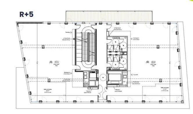 L’espace du cinquième étage bénéficie d’une position élevée qui lui confère une atmosphère particulièrement agréable, renforcée par un accès direct à des espaces extérieurs. La luminosité généreuse et la présence de ces ouvertures créent un environnement idéal pour accueillir des équipes cherchant un lieu de travail inspirant et confortable. Les éléments techniques intégrés dans l’étage garantissent une utilisation fiable et continue, avec un confort thermique soigné et une structure adaptée à des aménagements multiples. La configuration permet d’imaginer facilement un mélange harmonieux entre zones collaboratives, espaces de réunion et postes individuels. La proximité verticale des autres niveaux disponibles facilite par ailleurs l’occupation multi-étages pour une entreprise cherchant à étendre progressivement son implantation ou à répartir ses équipes par pôles.