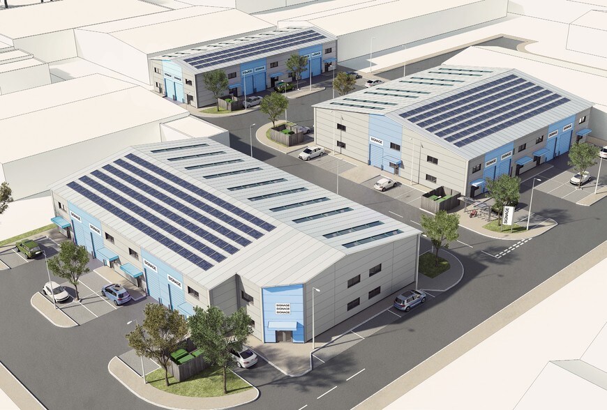 Limberline Spur, Hilsea Industrial Estate is located in a strategic location within an established freight and distribution zone, on Norway Road. The premises are 1.5 miles from the M27, 0.5 miles from Hilsea Train Station and 3 miles from Portsmouth International Port. Hilsea industrial Estate is a modern landscaped scheme of 22 business units across 3 terraces built in 2016, which are used for a mixture of industrial, storage and workshop purposes.