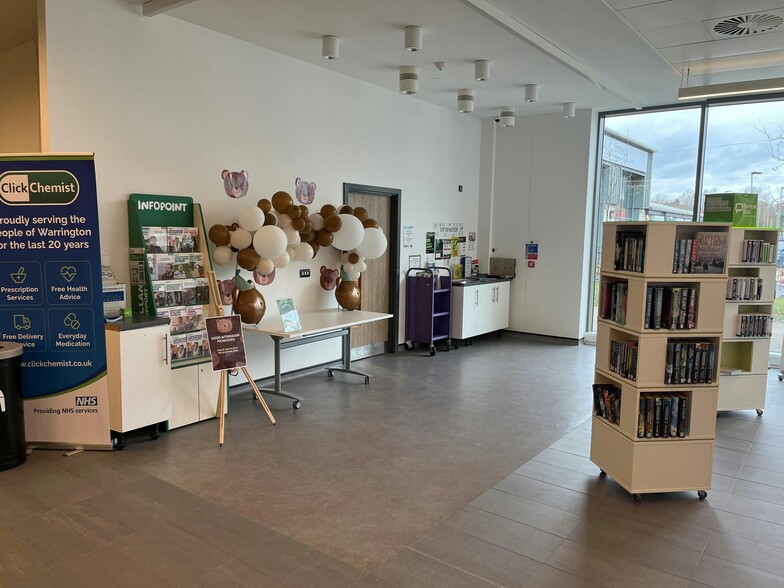 The space is situated within the entrance foyer to the Hub, which is a modern major Council run Leisure facility situated 2.5 miles to the west of Warrington Town Centre. The Hub offers a whole range of indoor and outdoor sporting facilities including football, tennis, swimming and a gym currently boasting approximately 5,000 members.