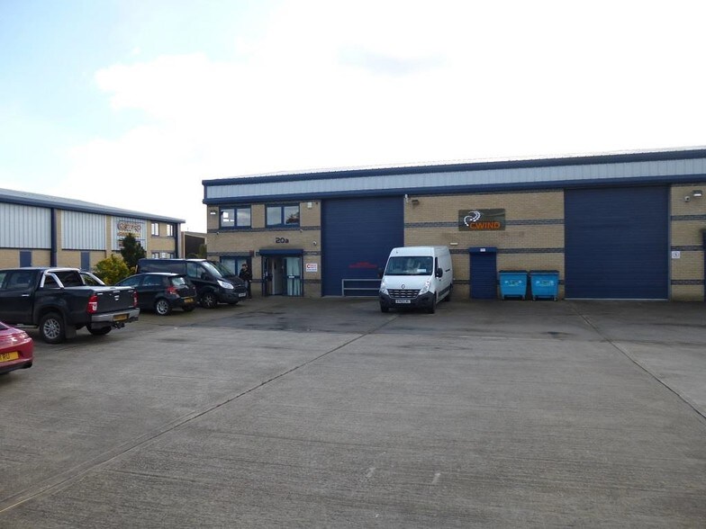 ight Industrial Unit of steel portal frame construction with brick and block walls under a pitched metal composite insulated roof incorporating translucent roof lights, to the underside of the eaves measures approx. 6m and an apex measuring circa 8.3m. There are two 5.5m x 4.5m up and over electricity operated loading doors to the front elevation providing access to the main warehouse. Personnel door leads to ground floor offices include Male and Female and Disabled WC facilities. The unit includes a concrete block and beam mezzanine floor with an area of approximately 1,175 sq. ft. currently used as storage but offers fantastic potential to create further offices due to the high-level windows providing additional natural light at first floor. The yard to the front of the building offers 14 car parking spaces.