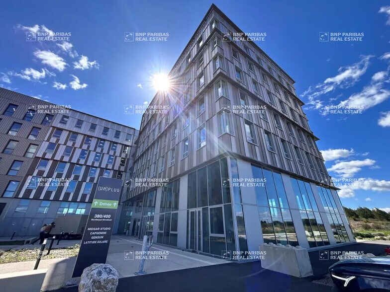 MONTPELLIER SUD - CAMBACERES - (UN)PLUG - A LOUER À louer, 2 955 m² de bureaux répartis sur des plateaux divisibles à partir de de 165 m² au sein de l'immeuble neuf (UN)PLUG complété par 292 m² de commerce situés dans le quartier d'affaires prisé "CAMBACERES", au Sud de Montpellier. Nombreuses dessertes et services à proximité immédiate. LOCATION BUREAUX - MONTPELLIER SUD - CAMBACERES Au sud de Montpellier, au sein du parc Cambacérès, découvrez l'immeubble (UN)PLUG et ses surfaces de bureaux et de commerce répartis sur 3 niveaux. Cet immeuble neuf détiendra un capacitaire de 800 personnes, une catégorisation ERP 5, des accès PMR et le label BREEAM Excellent. L'aménagement des bureaux a été pensé pour offrir un cadre de travail optimal grâce notamment à la climatisation réversible et des brises soleil orientables. Les futurs collaborateurs pourront profiter d'un toit-terrasse de 300 m²,ainsi que d'espace restauration ou commerce en rez-de-chaussée. L'immeuble est desservi par les transports en commun et dispose également d'un local vélo et d'un parking intérieur mutualisé de 192 places. Situé au sud de Montpellier le parc Cambacérès est sur le point de devenir un haut lieu de l'innovation et du travail collaboratif pour les entreprises du secteur numérique. Le quartier sera composé d'une Halle de l'Innovation, d'établissements de l'enseignement supérieur, d'entreprises, d'équipements et de services urbains mais aussi d'un parc de 30 hectares qui constituera un véritable poumon vert. Pensé pour mettre l'écologie au coeur des préoccupations, le quartier Cambacérès sera un lieu unique où se conjugueront urbanisme et respect de l'environnement. ACCESSIBILITÉ : Tramway ligne 1 Bus Autoroute A9 à 5 minutes Gare Sud de France en face du complexe Aéroport Montpellier Méditerrannée à 6 minutes.