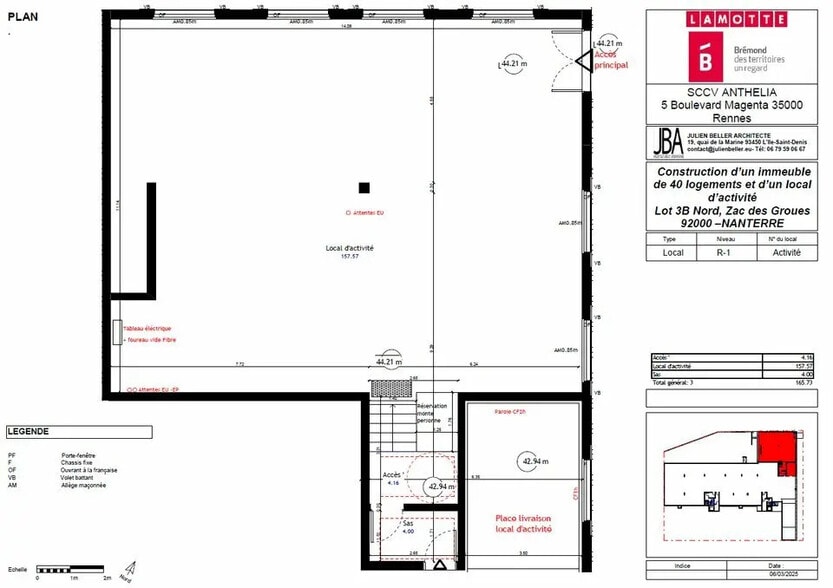 LAMOTTE ENTREPRISES & COMMERCES vous propose, au sein de l'ensemble immobilier "LES SOUS BOIS" (composée de 40 logements répartis sur 2 bâtiments), un local d'activité de 165.73 m² situé au rez-de-chaussée du bâtiment E. Ref : FG-92_0006