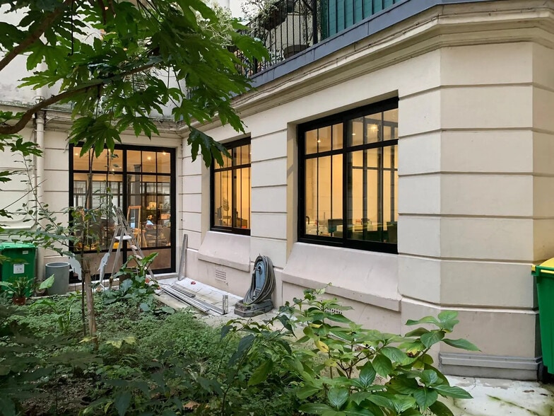 Bureaux à partager RDC, refaits à neuf, à 40 m des Buttes-Chaumont. Calme double exposition, à partir d'1 poste en partagé ou en occupation totale. A 40m des Buttes-Chaumont, bureaux à partager en rez-de-chaussée, entièrement rénové, calme et lumineux, avec double accès rue/cour. Espaces de travail distincts pour : indépendants, petites structures : Espace fermé avec fenêtre sur cour et entrée privative : 3 postes Espace ouvert sur cour : 2 bureaux mitoyens avec fenêtre, Espace, lumineux, avec porte-fenêtre donnant sur cour : 6 postes. Un espace : 2 postes situé à l’avant du local, côté vitrine. Espaces communs : Salle de réunion sous-sol - cuisine full équipée - WC et douche Esprit industriel - Rez-de-chaussée