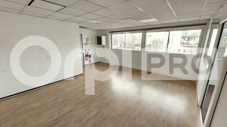 Orpi Pro vous propose à la location un bureau en N+1 dans un ensemble immobilier tertiaire, d'une surface de 58 m² en bon état. Ce bien comprend 2 bureaux et une salle de réunion. 2 places de parking privatif extérieur sont attribuées à ce lot. Frais de rédaction d'acte et d'état des lieux à prévoir en sus. - Type de bail : Dérogatoire - Fiscalité : TVA - Indice : ILAT - Indexation : Annuelle - Dépôt de garantie : 2 mois HT/HC - Baie de Brassage - Bureaux cloisonnés - Climatisation réversible - Cloisons amovibles - Double vitrage - Fibre optique - Luminaires faux plafond - Moquette - Open Space - Parking Extérieur