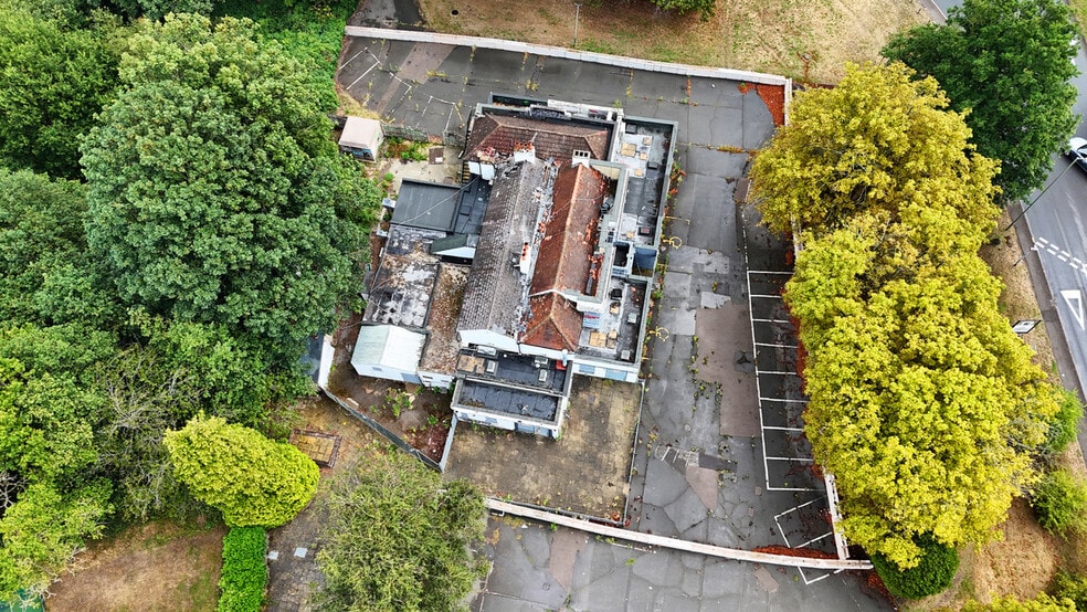 The property consists of a two storey detached building with painted front and side elevations beneath a multi-pitched roof. Externally, there is car parking available for approximately 40 vehicles.
