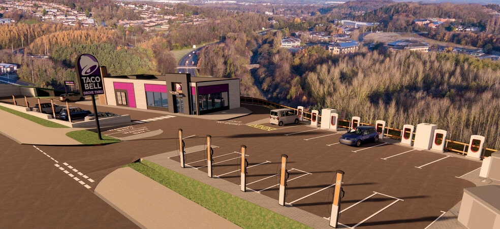Forward funding of a new drive thru and EV charging hub New build Taco Bell drive thru unit extending to 157.9 sq.m (1,700 sq.ft) with 10 car parking The EV charging hub will include 20 ultra rapid charging bays