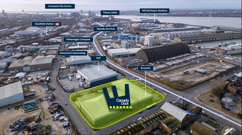 LOCATION Canada Dock Exchange fronts Derby Road (A565), the primary arterial route into Liverpool City Centre from the north, generating over 35,000 vehicle movements per day. The site sits within one of Merseyside's most established trade counter destinations, surrounded by national operators including Screwfix, Volkswagen, Johnstone's Decorating Centre, Speedy Services, and CCF. Sandhills and Bank Hall railway stations are within five minutes' walk. By road, the M57 is just 6 minutes away and the M62 12 minutes, providing swift access across the North West. Industrial Trade Counter Unit To Let, Liverpool TO LET Trade Counter Unit 5,242 sq ft SPECIFICATION - Feature customer entrance - Steel portal frame - 4m wide automatic loading doors - 11 dedicated car parking spaces - Energy efficient cladding system - 3-phase power - EPC A - 10% roof lights - 7m eaves height Feature customer entrance Dedicated car parking 3-phase power Planning consent for B1/B2/B8 & Trade Counter Located on a key arterial route