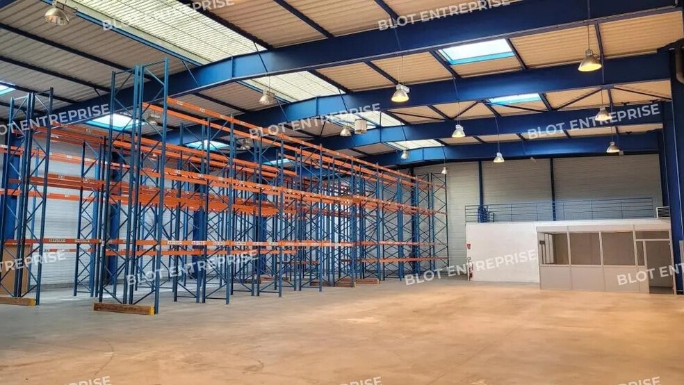 Un grand espace de rangement de 970 m², dont une mezzanine de 210 m². Environ 320 m² de bureaux et de locaux pour le personnel.