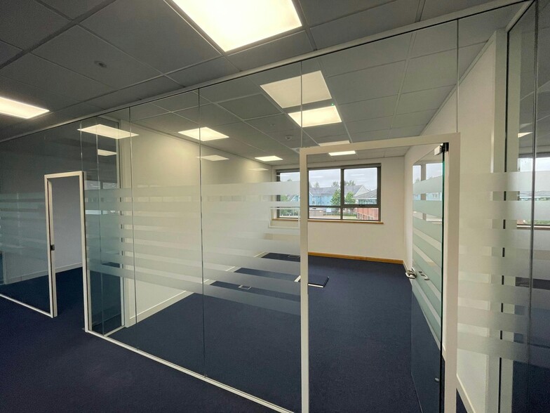The available suite comprises 1,810 sq ft of open plan workspace, thoughtfully designed to support modern business operations. Tenants benefit from a dedicated breakout and kitchen area, comfort cooling, and fully accessible raised flooring throughout. The building is set within a professionally managed estate with landscaped surroundings, offering a clean and welcoming environment for staff and visitors alike. Seven dedicated car parking spaces are included, a valuable amenity in this location.