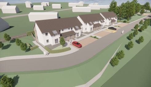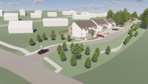 The development will comprise 12 no 2-bedroomed 4-person private entry cottage flats with flexible accesses allowing for wheelchair access on the ground floor which will facilitate a mix of residents within the development. The buildings will be finished with white rendered walls with sections of reconstituted stone under pitched slate grey-coloured tiled roofs.