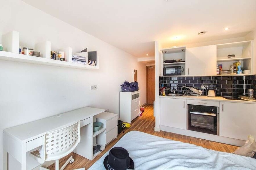 A modern studio apartment forming part of a student specific accommodation development close to University of Liverpool, and Liverpool city centre The studio is finished to a modern standard with a fitted kitchen and integrated appliances, bedroom/living area and en-suite shower room.Within Liverpool One there is also a reception area,a communal area to socialise,bike store, gym, cinema room and laundry.