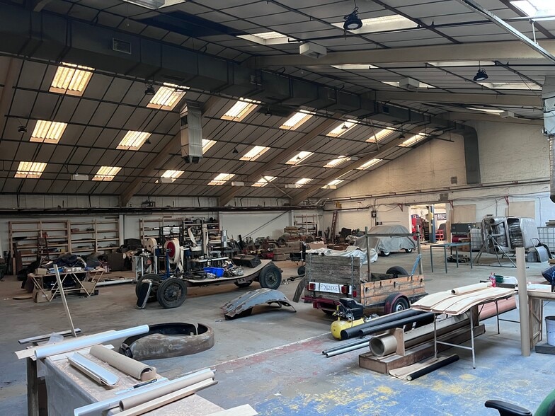 The unit is of steel portal frame construction with pitched corrugated asbestos roof and brick elevations with skylights and is underdrawn with insulated panels. The unit is lit with a combination of old sodium lighting and newer LED lights. Internally the unit contains a range of offices, stores and mess facilities. The unit is accessed on the front left hand side via a roller shutter door. Access is via a shared courtyard and access road to the front of the unit. The yard will be resurfaced prior to occupation.