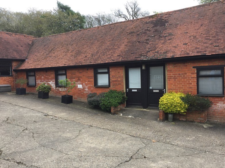 A single storey office premises forming part of a courtyard of converted barns, with similar premises in a rural location between Henley on Thames and Wargrave.