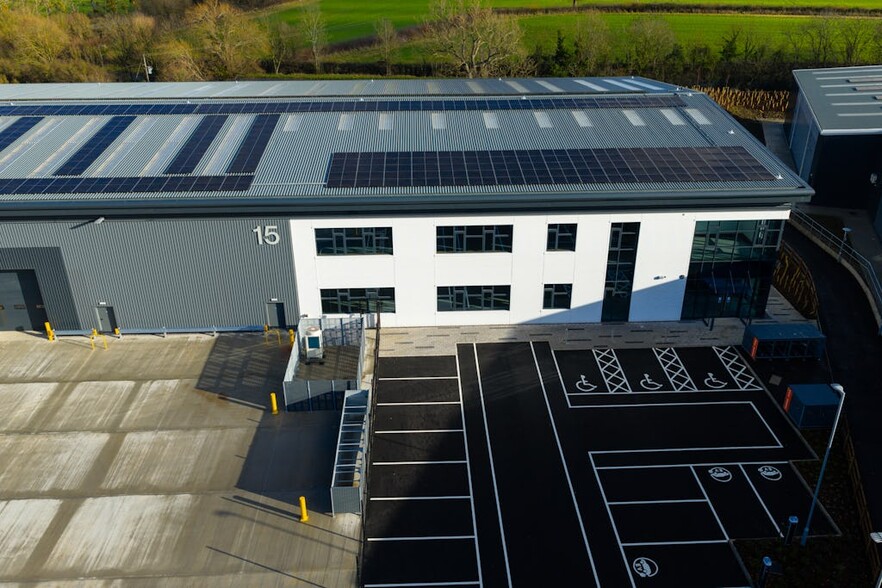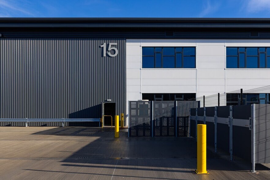 Unit 15 features 34,175 sq ft of space, including both warehouse and office areas. The unit has a clear internal height of 8m and three loading doors, making it suitable for a variety of industrial uses. Energy-efficient features, such as PV solar panels and LED lighting, are included to help businesses reduce operational costs. Located just half a mile from Junction 12 of the M5, this unit benefits from excellent transport links.