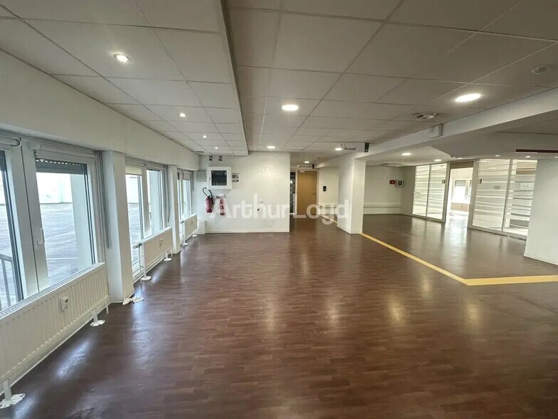 Plateau de bureaux lumineux avec belle hauteur sous plafond supérieure à 3 m, cloisons amovibles permettant une reconfiguration rapide, nombreuses issues de secours, conformité ERP 5.