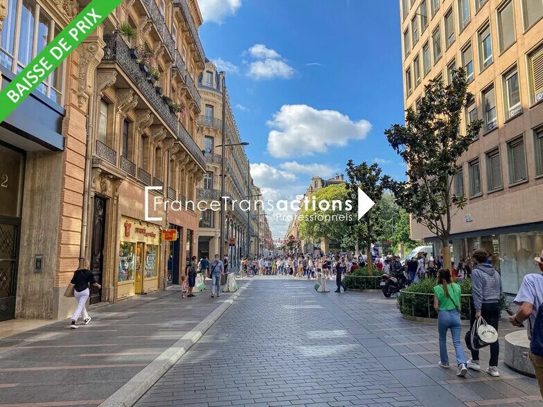 Opportunité à saisir rapidement ! Local commercial de 72m² à céder sur l'axe commerçant principale de Toulouse, la rue Alsace Lorraine. Situé à l'extrémité de la rue, côté Jeanne d'Arc, le local commercial bénéficie du fort flux piéton de l'environnement. Il dispose d'une surface de vente de 52m² et d'une réserve attenante en sous sol de 20m². Celui-ci est en bon état mais nécessite des travaux d'aménagement. Conditions financières : Prix de cession : 110 000Euros Loyer annuel HT HC : 33 000Euros Charges annuelles : 1 000Euros Taxe foncière : Charge Bailleur Ref : 13725 Honoraires d'agence HT à la charge du preneur : 10% du prix de vente Référence : 13725 - Type de bail : Commercial - Durée : 3/6/9 ans - Préavis : 6 mois - Fiscalité : TVA - Indice : ILC - Indexation : Annuelle au 1er janvier - Dépôt de garantie : 3 mois HT/HC - Loyers et charges : Trimestriels et d'avance
