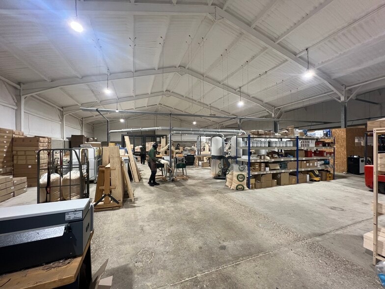 A steel framed storage unit with partial concrete walls under a pitched roof with timber and brick elevations. Externally, there is a good-sized open yard area providing parking and facilities for loading and unloading (shared). The outgoing tenant has installed a high-quality office pod within the unit, subject to terms offered, this is available for purchase.